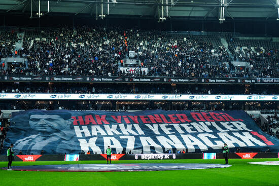 Siyah-beyazlı tribünler, karşılaşma öncesinde açtıkları pankart ile Türkiye Futbol Federasyonuna (TFF) tepki gösterdi.