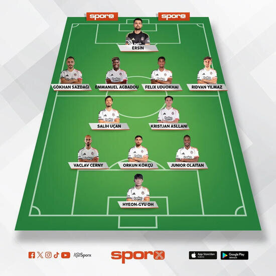 Beşiktaş: Ersin, Gökhan, Agbadou, Uduokhai, Rıdvan, Salih, Asllani, Cerny, Orkun, Olaitan, Oh.