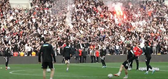 Beşiktaş'ta yeni teknik direktör Valerien Ismael, 3'lü ile sahaya çıktı ve tribüne giderek taraftarla fotoğraf çektirdi.