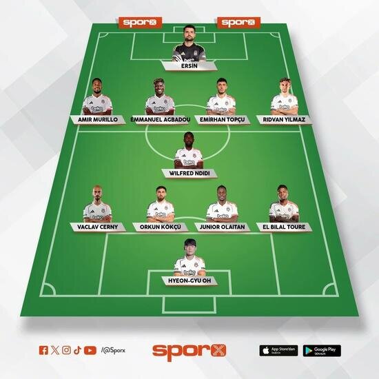 Beşiktaş: Ersin, Murillo, Agbadou, Emirhan, Rıdvan, Ndidi, Orkun, Olaitan, El Bilal, Cerny, Oh.