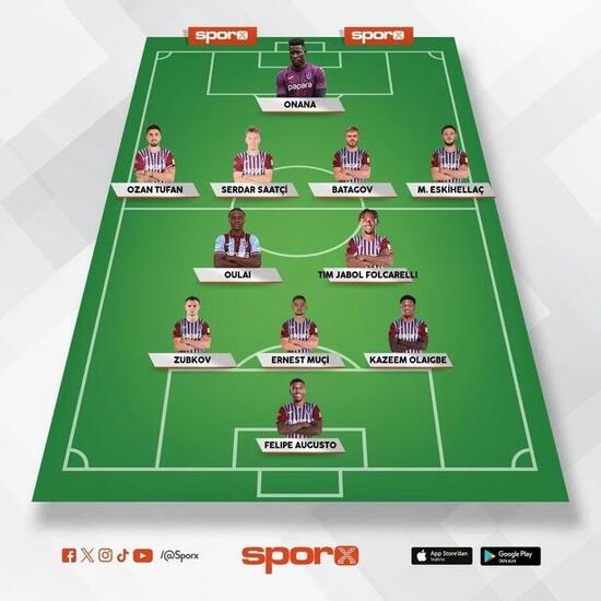 Trabzonspor: Onana, Ozan Tufan, Serdar, Batagov, Mustafa Eskihellaç, Oulai, Folcarelli, Zubkov, Muçi, Olaigbe, Augusto.