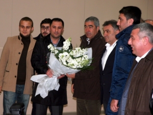 Başkanı Korkut Şerifoğluları, Beşiktaş Kulübü Futbol Komitesi üyesi Ahmet Kavalcı ve teknik direktör Samet Aybaba'ya çiçek takdim etti.