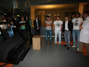 Futbolcular, spor hekimi Tolga Aydoğ'dan merkezdeki aletlerle ilgili bilgi edindiler.