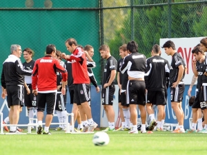 başlayan idmanda siyah-beyazlılarımız, bir süre pas ve top kapma çalışması yaptı. Daha sonra istasyon koşuları yapan ekibimiz, yarım sahada oynanan