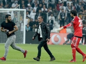 Tecrübeli file bekçisi tehlikenin farkına varıp hemen sahaya giren taraftarın yanına gitti ve dışarıya gönderdi.