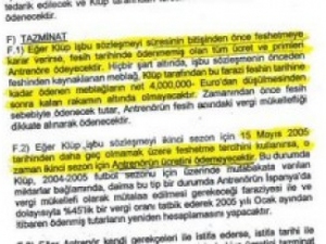 altında, işbu sözleşmenin önceden feshinden kaynaklanan meblağ, kulüp tarafından bu farazi feshin tarihine kadar ödenen meblağların net 4 milyon